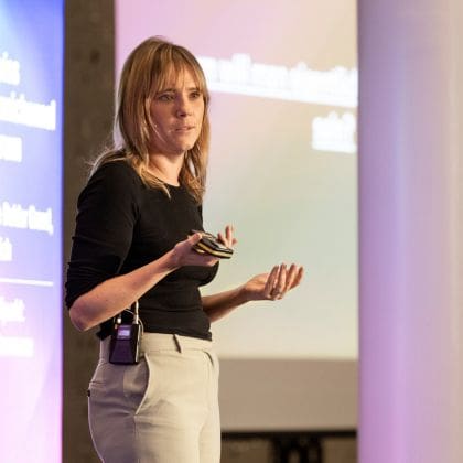 Als Keynote Speakerin und Data Scientist eröffnet Theresa Schleicher auf der Bühne Visionen in einer nachhaltigen, datengetriebenen Welt und Wirtschaft.